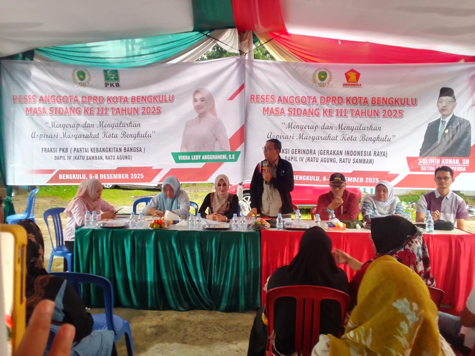 Kota Bengkulu, GK – Dua legislator Dapil IV, Vinna Ledy Anggraheni, S.E. dan Solihin Adnan, S.H., M.H., mengadakan reses bersama di Kantor Camat Ratu Agung pada Minggu (7/12). Reses ini menjadi momentum bagi masyarakat untuk menyampaikan keluhan sekaligus mendapatkan penjelasan langsung mengenai upaya penanganan berbagai persoalan yang mereka hadapi.