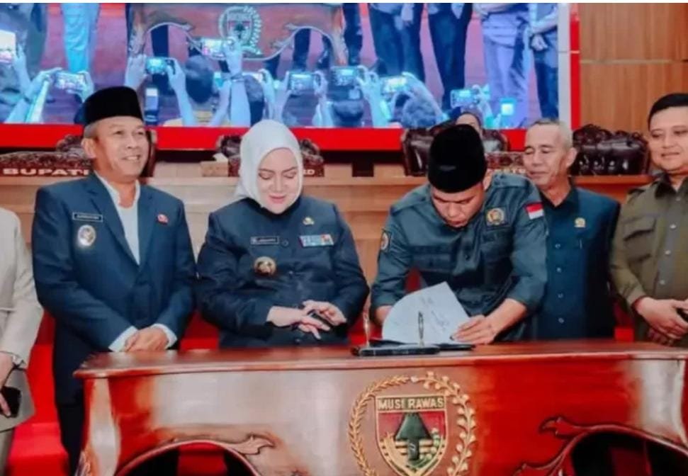 Penandatanganan Berita Acara dan penyerahan buku LKPJ Tahun 2024 dilakukan oleh Bupati Ratna Machmud dan Ketua DPRD Firdaus, SE, serta disaksikan Wakil Bupati H. Suprayitno, Sekda Musi Rawas, unsur Forkopimda, jajaran Kepala OPD, serta seluruh peserta rapat.