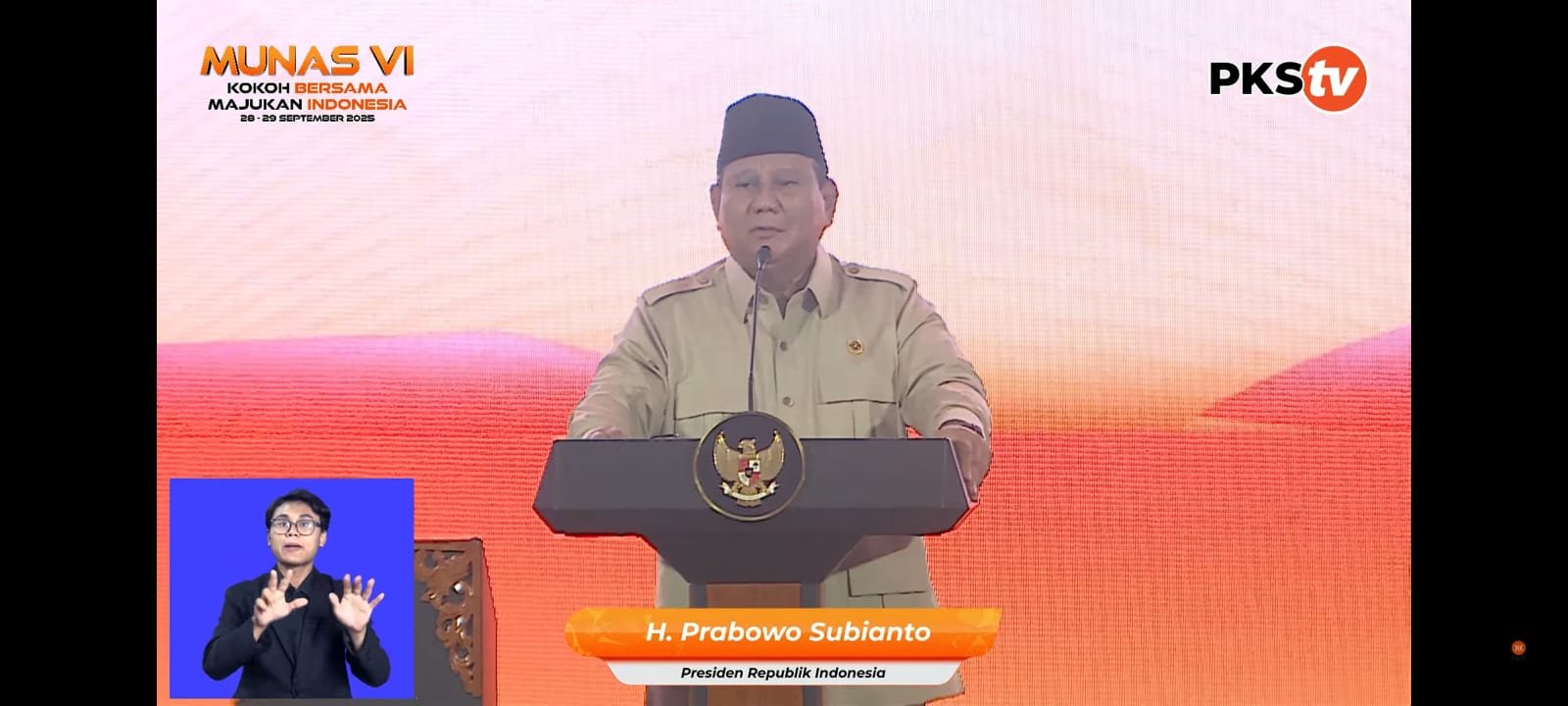Jakarta, GK – Presiden Prabowo Subianto menghadiri penutupan Musyawarah Nasional (Munas) VI Partai Keadilan Sejahtera (PKS) yang digelar di Jakarta pada 28–29 September 2025. Kehadiran Prabowo turut didampingi sejumlah menteri serta pimpinan partai politik.