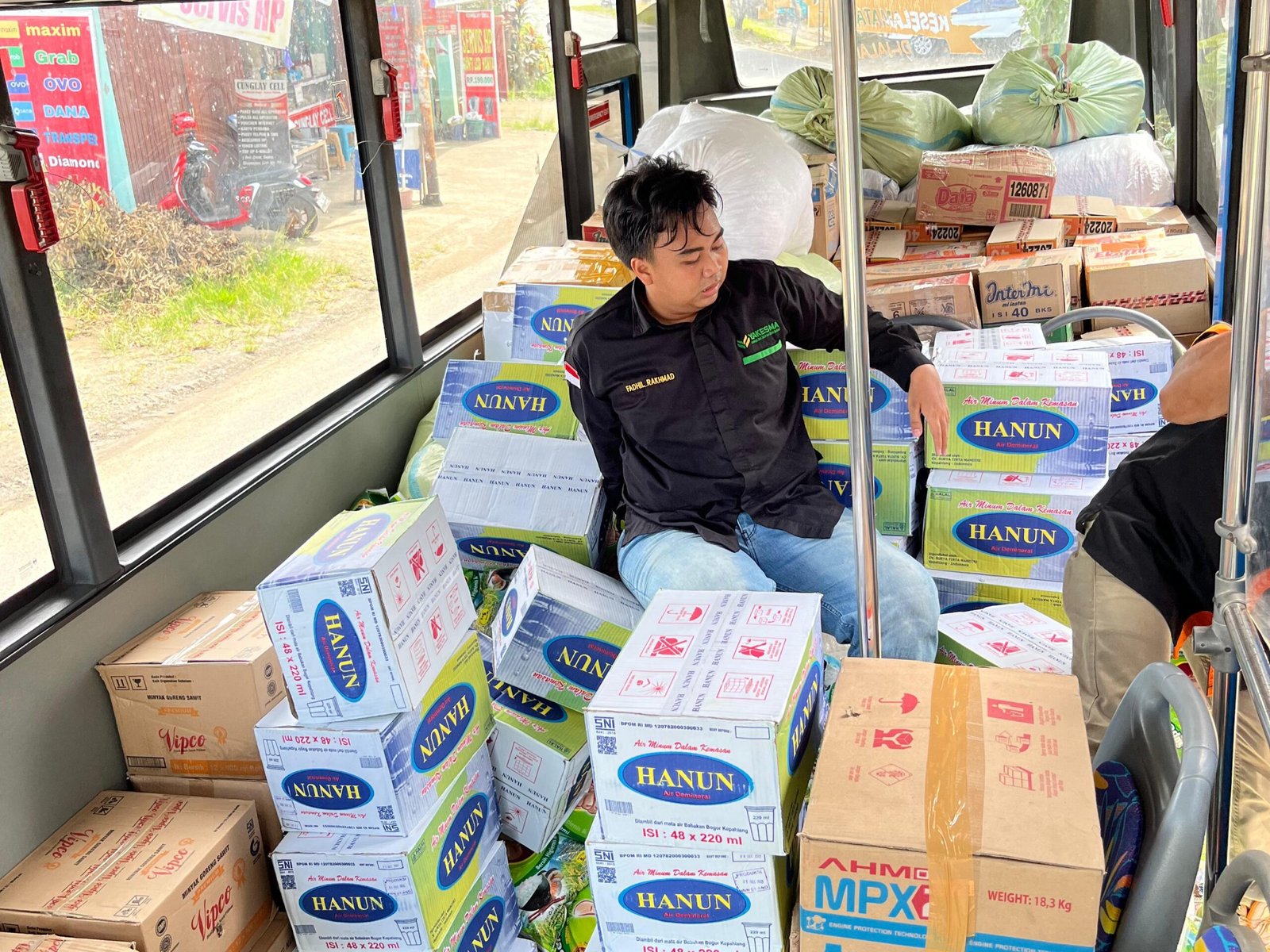 “Total itu ada 8 ton. Logistik berupa beras 4 ton, minuman cup 3 ton, dan pakaian yang sudah kami sortir, benar-benar layak dan seperti baru,” ujar Apra.