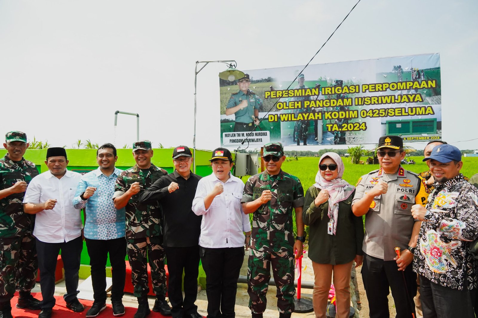 Bengkulu, – Pada hari kedua rangkaian kunjungan Pangdam II/Sriwijaya, Mayjen TNI Mohammad Naudi Nurdika di Provinsi Bengkulu, bersama Gubernur Bengkulu Rohidin Mersyah dan unsur Forkopimda, meresmikan Irigasi Perpompaan di Desa Sari Mulyo, Kecamatan Sukaraja, Kabupaten Seluma, Jumat (06/09).