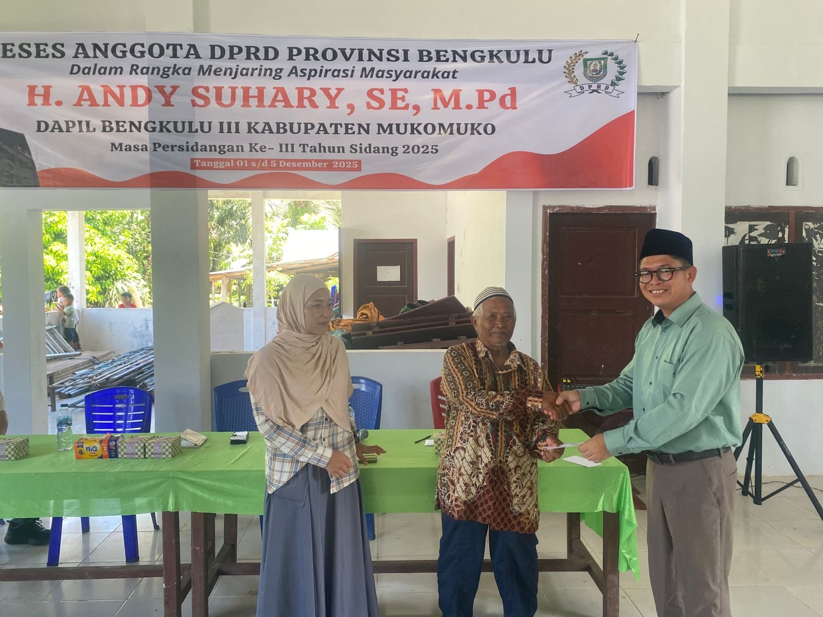 Mukomuko, GK – Kegiatan Reses Masa Sidang Ke-III yang dilakukan Ketua Badan Kehormatan (BK) DPRD Provinsi Bengkulu, Andy Suhary, S.E., M.Pd., di Desa Pasar Sebelat berlangsung hangat dan penuh dialog terbuka. Warga memanfaatkan kesempatan ini untuk menyampaikan berbagai keluhan dan harapan, terutama yang berkaitan dengan sektor pertanian, kondisi infrastruktur, serta kebutuhan penguatan UMKM desa.