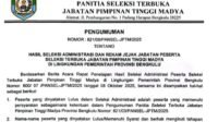 Beredar Surat Pengumuman Tiga Nama Calon Sekda Provinsi Bengkulu