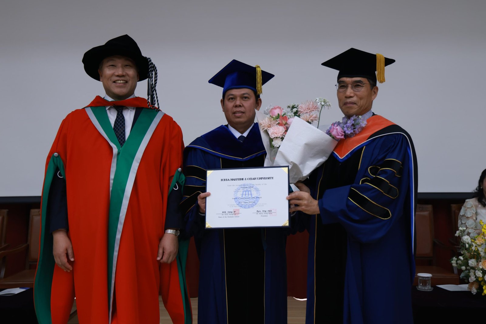 Penganugerahan gelar doktor kehormatan tersebut berlangsung khidmat di Kim Kang-hee Hall, KMOU Library, distrik Yeongdo-gu, Busan, dan dipimpin langsung oleh Presiden KMOU, Ryoo Dong-Keun. Prosesi ini turut dihadiri civitas academica serta sejumlah akademisi ternama Korea Selatan.