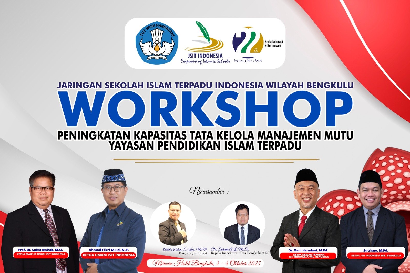 Bengkulu, GK – Jaringan Sekolah Islam Terpadu (JSIT) Wilayah Bengkulu terus menunjukkan komitmennya dalam meningkatkan mutu pendidikan di lingkungan sekolah dan yayasan anggotanya. Salah satu langkah nyata diwujudkan melalui kegiatan pelatihan dan workshop peningkatan mutu pendidikan yang diselenggarakan di Hotel Mercure Bengkulu pada 3–4 Oktober 2025.